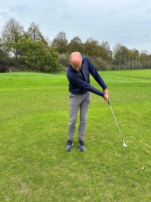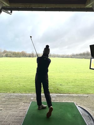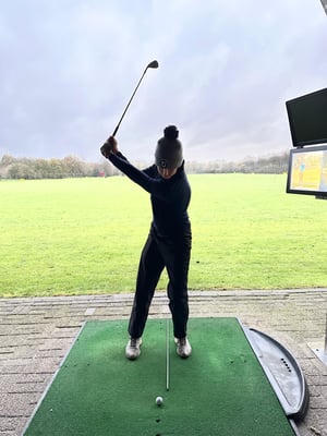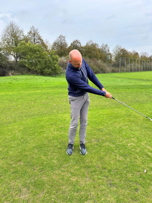 Als laatst hebben wij een 3/4 swing getraind met een lange rechterarm (voor de rechtshandige) waarbij de rechterhand tegenover de linkerschouder stopt. Hierbij kun je ook een stukje richtingcontrole trainen door middel van de stand van de club. Het liefst hebben we deze in lijn van de rechterarm.